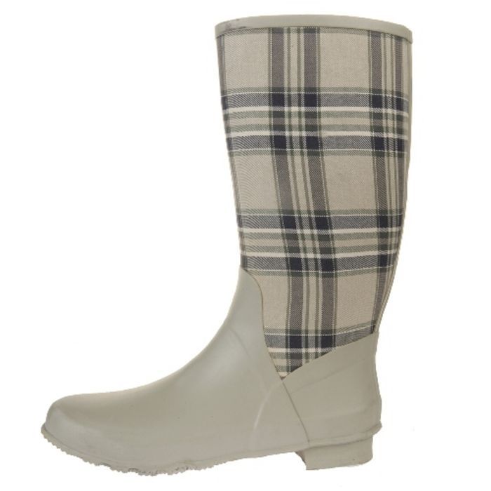 Description: Γαλότσα σε εκρού απόχρωση του οίκου Belstaff από πλαστικό και ύφασμα σε καρώ μοτίβο. Το ύψος του τακουνιού είναι 0,5 cm, η περιφέρεια της γάμπας 34 cm ενώ το ύψος της 32 cm. Μία άριστα κατασκευασμένη γαλότσα με συνθετικό πάτο και λάστιχο στη σόλα που σας εξασφαλίζει ασφαλές περπάτημα στη βροχή ενώ παράλληλα σας δίνει μία μοντέρνα νότα στην εμφάνισή σας.