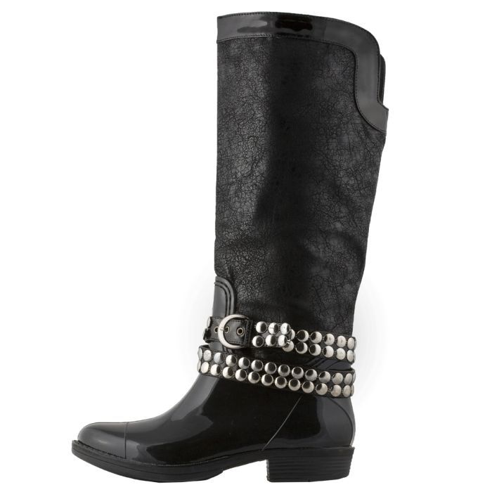 Description: Εντυπωσιακή μπότα- γαλότσα του οίκου Gardini από συνθετικό δέρμα σε μαύρη απόχρωση, με λουστρίνι φινίρισμα και λωρίδες διακοσμημένες με τρουκ στο κάτω μέρος του παπουτσιού. Το ύψος του τακουνιού είναι 3 cm, η περιφέρεια της γάμπας 38 cm ενώ το ύψος της 42 cm. O μαλακός πάτος του παπουτσιού σε συνδυασμό με την αντιολισθητική της σόλα σας υπόσχονται τον απαιτούμενο αέρα άνεσης στο περπάτημα. Μία δημιουργία που προσδίδει απόλυτη ροκ διάθεση στις εμφανίσεις σας."
